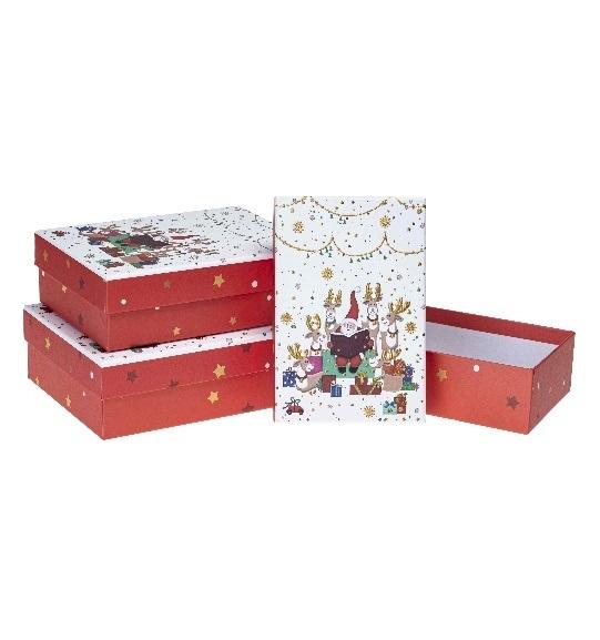 Zestaw pudełek prezentowych 3szt, motyw świąteczny z Mikołajem i reniferami.