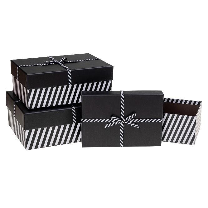 Opakowanie Pudełko prezentowe z kokardą 3szt czarny ROZETTE