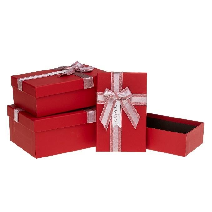 Opakowanie Pudełko prezentowe z kokardą 3szt czerwony ROZETTE