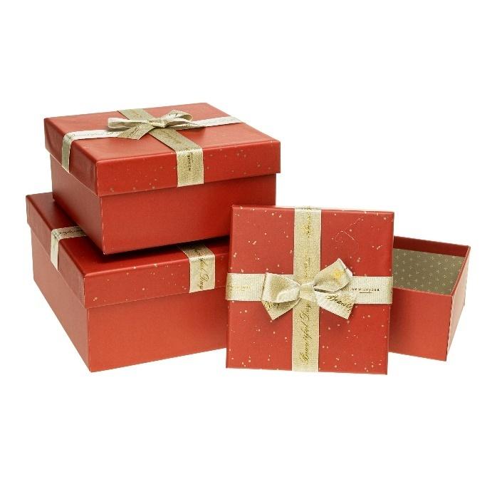 Opakowanie Pudełko prezentowe z kokardą 3szt czerwony ROZETTE