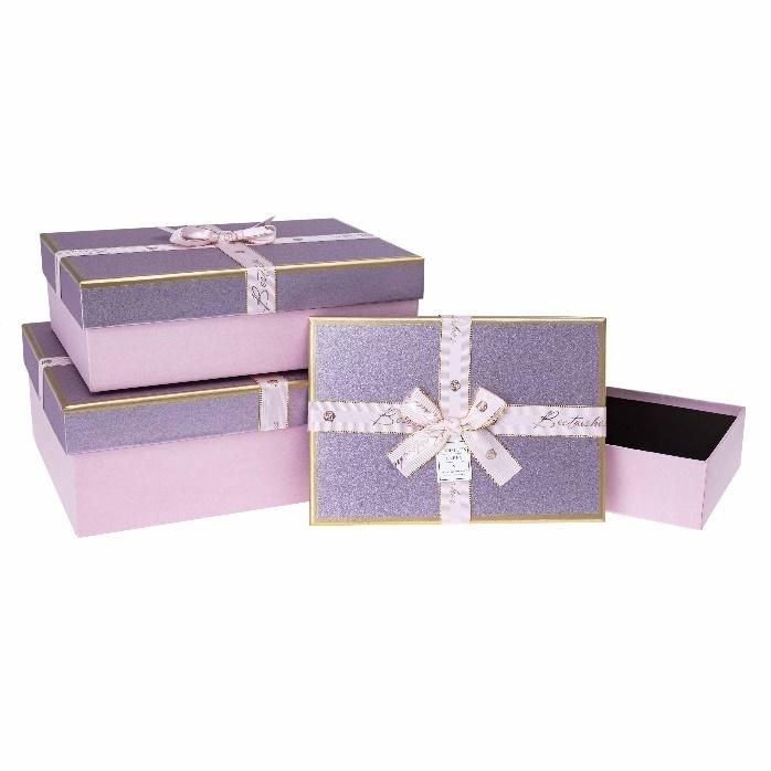 Opakowanie Pudełko prezentowe z kokardą 3szt fiolet ROZETTE