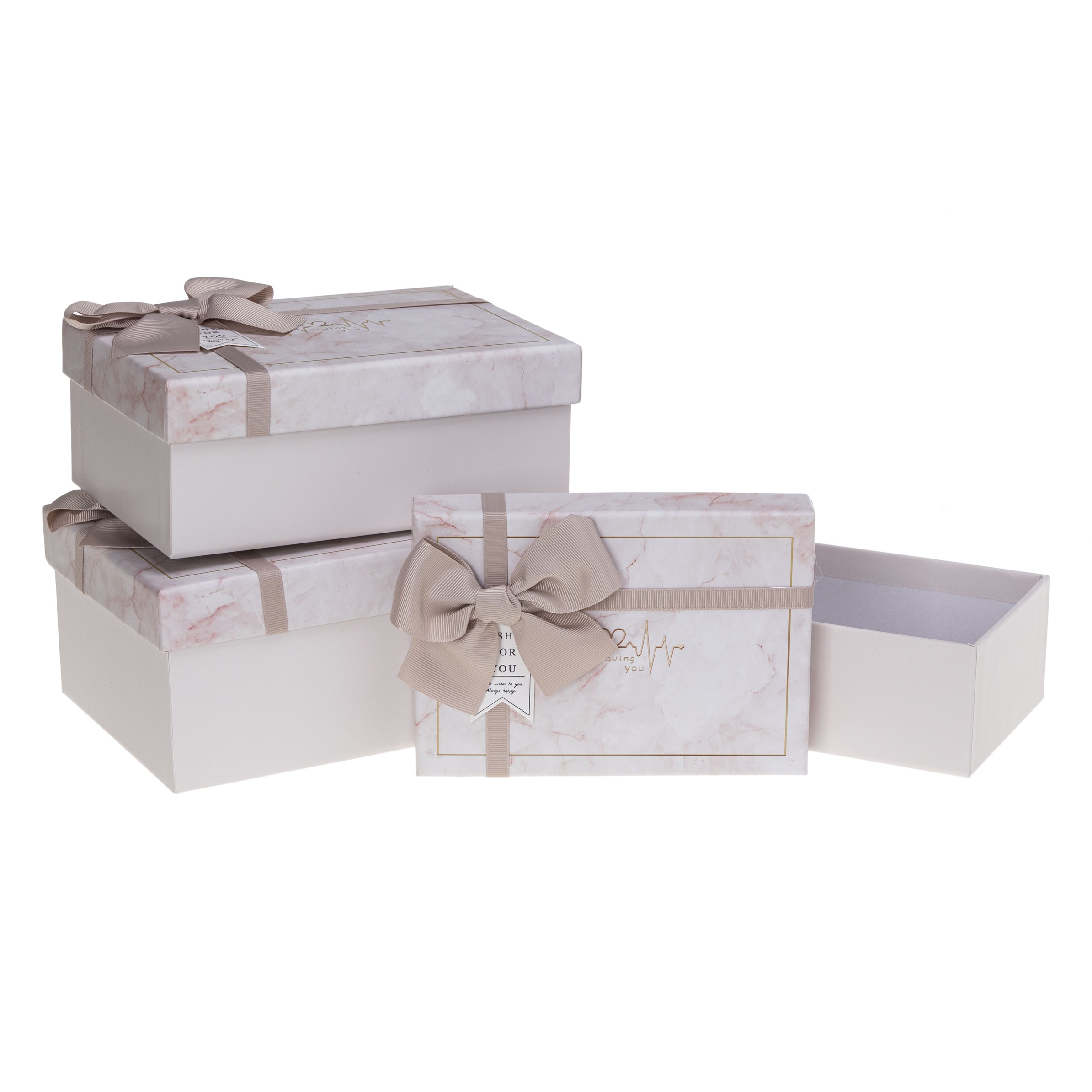 Opakowanie Pudełko prezentowe z kokardą 3szt marmur ROZETTE