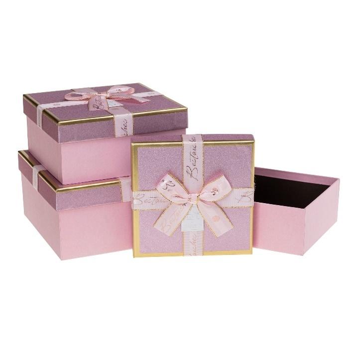 Opakowanie Pudełko prezentowe z kokardą 3szt różowy ROZETTE