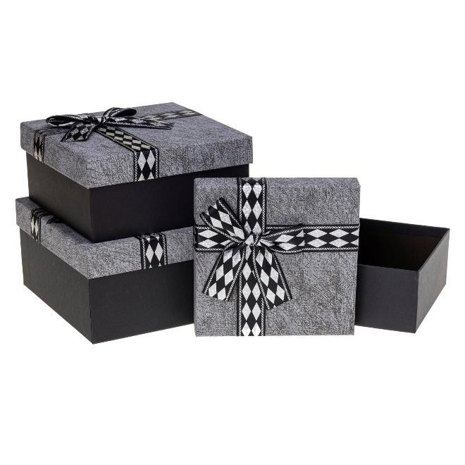 Opakowanie Pudełko prezentowe z kokardą 3szt szary ROZETTE
