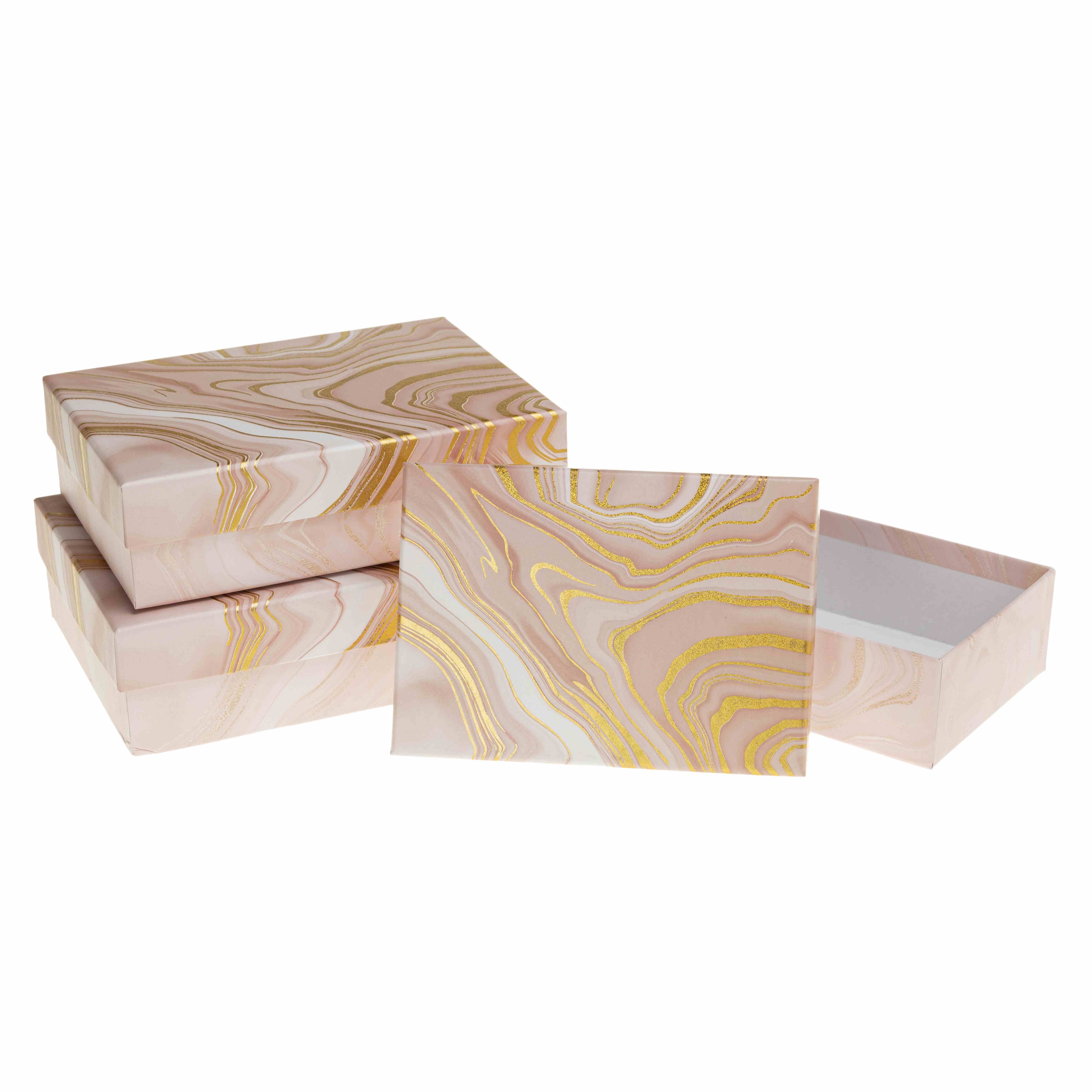 Pudełko prostokątne z kokardą 3szt marmur ROZETTE