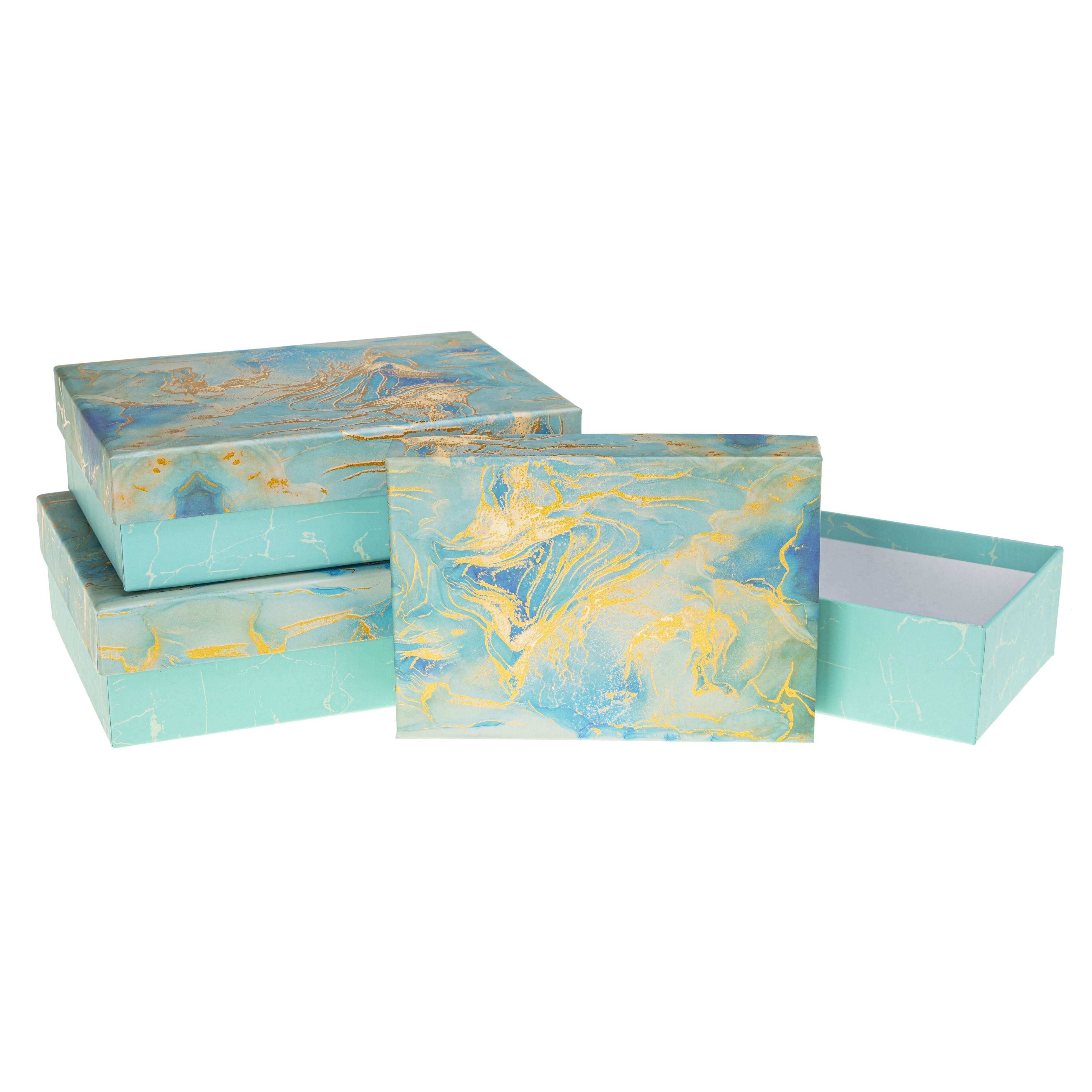 Pudełko prostokątne z kokardą 3szt marmur ROZETTE