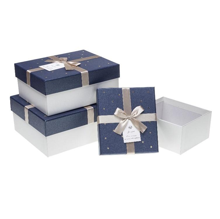 Pudełko prostokątne z kokardą 3szt nieb ROZETTE