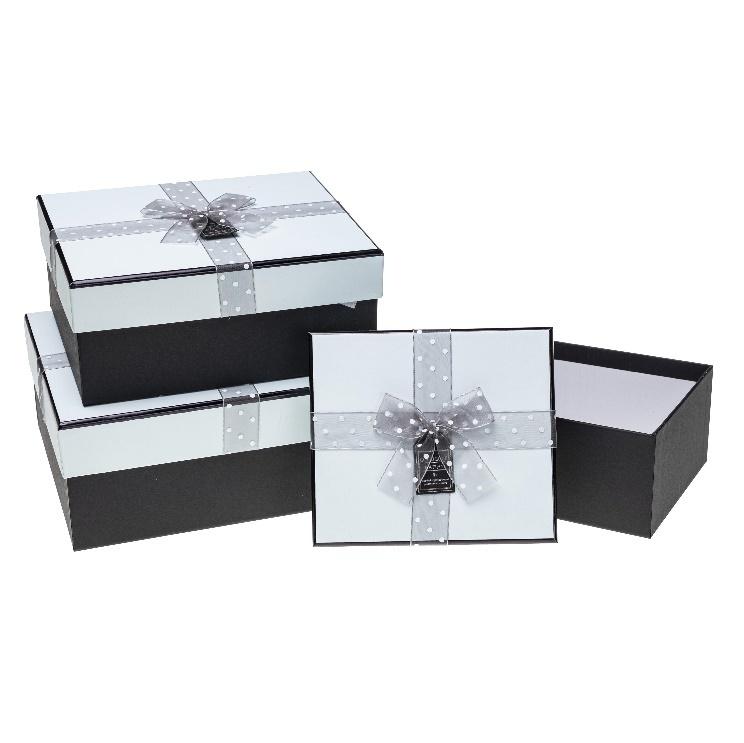 Pudełko prostokątne z kokardą 3szt ROZETTE
