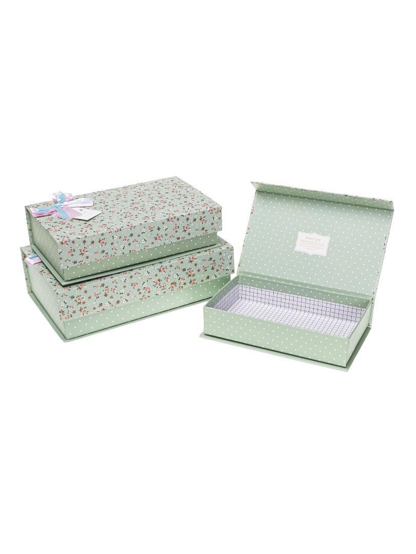 Pudełko prostokątne z kokardą 3szt zielony ROZETTE