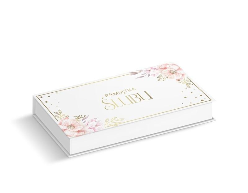 Ozdobne Pudełko PD Pamiątka Ślubu - to doskonały sposób na estetyczne i wyjątkowe zapakowanie banknotu lub karty podarunkowej. Jego klasyczny design podkreślają złote zdobienia, które dodają mu szyku i podniosłego charakteru. Magnetyczne zamknięcie sprawia, że pudełko można wielokrotnie otwierać i zamykać, a starannie dobrane życzenia w środku czynią je idealnym wyborem na szczególne okazje. Wymiary produktu: 18 cm x 9 cm Zamknięcie: magnetyczne Wnętrze: eleganckie życzenia w środku