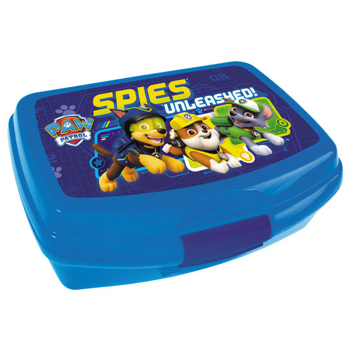 Pudełko śniadaniowe o wymiarach 17x14x6cm wykonane z kolorowego tworzywa sztucznego, zamykane na zatrzask. Pomieści kanapki do szkoły i zdrowe przekąski dla Twojego dziecka. Całość ozdobiona nadrukiem Paw Patrol.