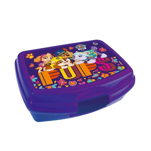 Pudełko śniadaniowe o wymiarach 17x14x6cm wykonane z kolorowego tworzywa sztucznego, zamykane na zatrzask. Pomieści kanapki do szkoły i zdrowe przekąski dla Twojego dziecka. Całość ozdobiona nadrukiem Paw Patrol.