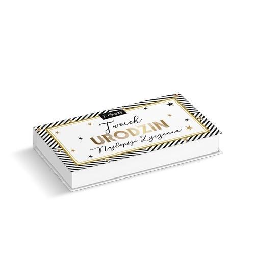 Magnetyczne zamknięcie sprawia, że pudełko można wielokrotnie otwierać i zamykać, a starannie dobrane życzenia w środku czynią je idealnym wyborem na szczególne okazje.