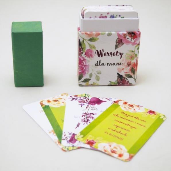 Jest to 50 kart dwustronnie zadrukowanych. Na jednej stronie znajduje się werset a na drugiej słowo inspiracji i wdzięczności w stronę mamy.