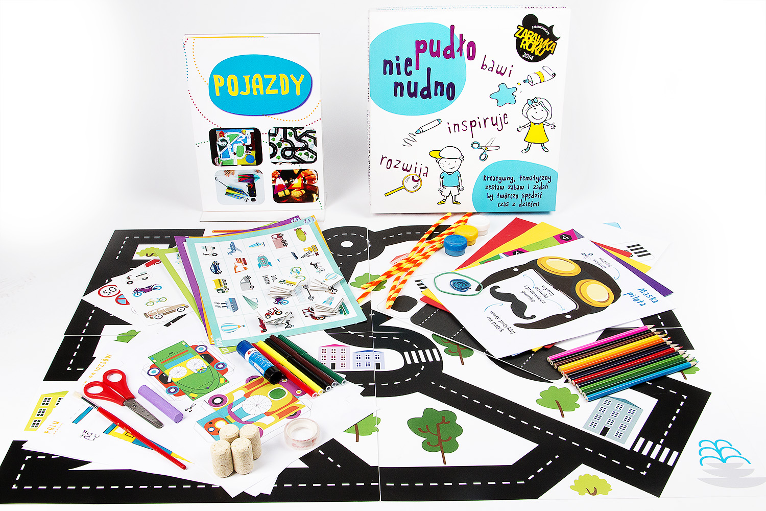Kreatywny zestaw zabaw i zadań wraz ze wszystkimi materiałami potrzebnymi do zabawy. Z Pudło Nie Nudno Pojazdy dzieci nauczą się zasad ruchu drogowego, podstawowych znaków drogowych, właściwego i bezpiecznego zachowania na ulicy, poznają wiele ciekawostek m.in. o samochodach.