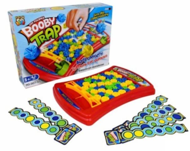 Wspaniała gra zręcznościowa PUŁAPKA. Gra polega na wyciągnięciu pionków z planszy, aby reszta pionków nie wyleciała z planszy. Pionki są ściśnięte przez ścianę, która napina wszystkie pionki. Przy nieostrożnym pociągnięciu za pionek ściana może zbyt gwałtownie ścisnąć pozostałe pionki co spowoduje ich wystrzelenie i rozsypanie. Każdy z graczy dostaje własną kartę do gry, która pokazuje jakiego koloru i rozmiaru pionki należy wyciągnąć. Pionki należy wyjmować zgodnie z kolejnością na karcie przechodząc na kolejne pola na karcie gry.