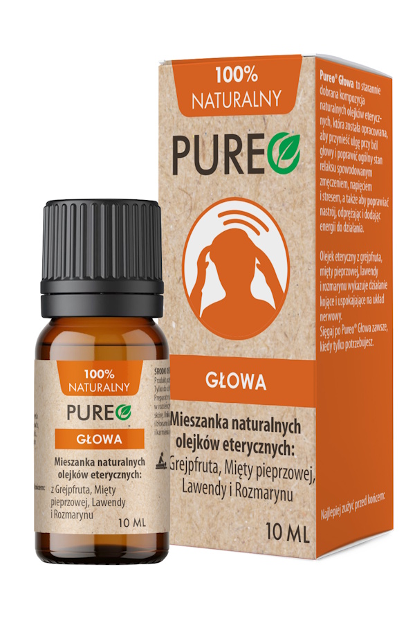 Olejek eteryczny Głowa 10ml Pureo mieszanka naturalnych olejków eterycznych z grejpfruta, mięty pieprzowej, lawendy i rozmarynu