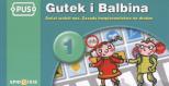 Gutek i Balbina 1 to bohaterowie kolejnej książeczki z serii PUS o tematyce ekologicznej, obejmującej także zasady bezpieczeństwa ruchu drogowego. W codziennych zajęciach, w czasie wyprawy do lasu, na plażę, w góry, czy podczas zabawy, Gutkowi i Balbinie towarzyszą Marianna z Ludomirem oraz ich pies Pidek. Pięknie zilustrowane przygody Gutka i Balbiny inspirują dzieci do obserwowania sytuacji i rozpoznawania zachowań, które dla bezpieczeństwa uczestników ruchu drogowego niosą zagrożenie. Jednocześnie uczą właściwego zachowania. W trakcie zabawy z Gutkiem i Balbiną dzieci uczą się kolorów sygnalizacji świetlnej i rozróżniania kształtów znaków drogowych. Obserwują konkretne sytuacje na drodze, przez co stają się świadomymi uczestnikami ruchu drogowego. Gutek i Balbina - jak wszystkie dzieci - kochają przyrodę i dbają o swoje naturalne środowisko: czystą wodę, powietrze, glebę. Zimą dokarmiają zwierzęta, a latem sadzą krzewy i drzewa. Do korzystania z książeczki niezbędny jest "Zestaw Kontrolny PUS"
