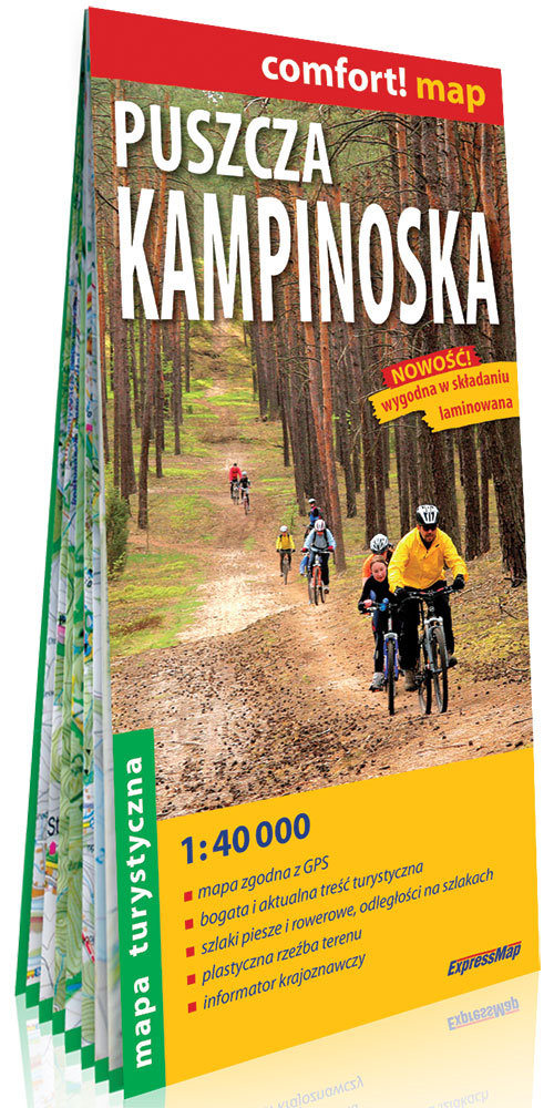 Puszcza Kampinoska Rowerowa wyprawa leśnymi szlakami? A może spacer śladami łosia? Nasza laminowana mapa opracowana we współpracy z doświadczonymi krajoznawcami z regionu pomoże zaplanować weekendową wycieczkę do Puszczy Kampinoskiej. Mapa zawiera bogatą treść turystyczną, m.in.: • drogi dopuszczone do ruchu na terenie Kampinoskiego Parku Narodowego, • szlaki piesze i rowerowe, • odległości w kilometrach na szlakach, • schroniska młodzieżowe, pola namiotowe, hotele, • muzea, zabytki i inne interesujące obiekty, • obszary ochrony ścisłej, obszary ochrony krajobrazowej, • atrakcje przyrodnicze, • informator krajoznawczy. Cechy mapy: • dogodna zarówno dla pieszego, jak i rowerzysty, • dwustronnie laminowana, • wygodna w składaniu, • trwała i wodoodporna, • zawiera cieniowanie plastycznie pokazujące ukształtowanie terenu, • zgodna z GPS – współrzędne geograficzne w układzie WGS-84.