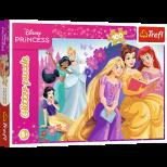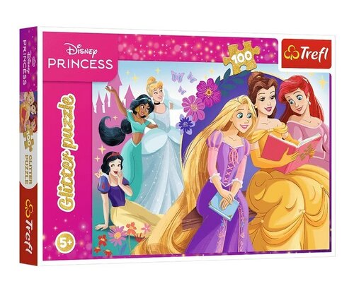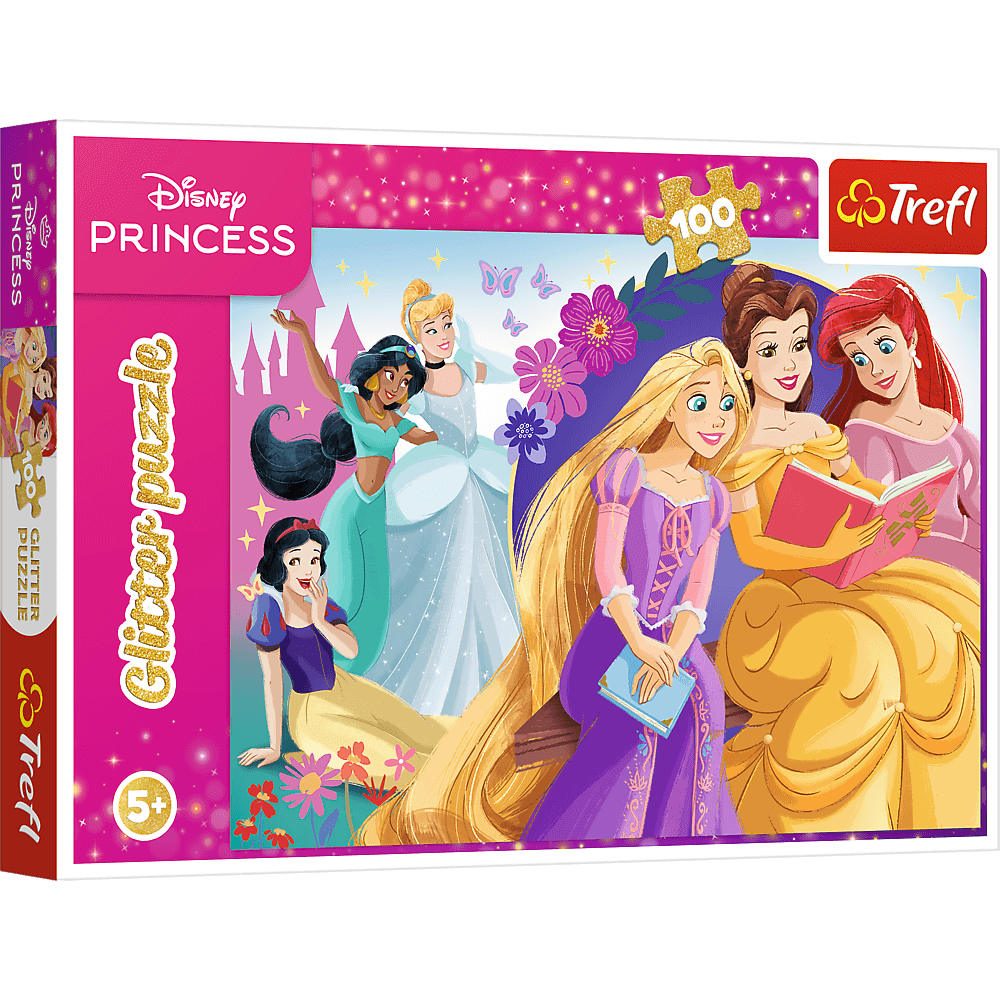 Blask magii przyjaźni to puzzle z serii Glitter, składające się ze 100 elementów. Układanka została pokryta delikatnym, złotym brokatem, który sprawia, że zarówno opakowanie, jak i poszczególne elementy pięknie się mienią! Po ułożeniu puzzli powstanie obrazek o wymiarach 410x278 mm, który zachwyci wszystkich małych fanów bajek o Księżniczkach. Układanka, przeznaczone są dla dzieci powyżej 5. roku życia