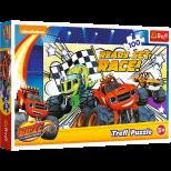Puzzle 100 elementów z bohaterami serialy animowanego "Blaze i mega maszyny". Po ułożeniu powstanie obrazek o wymiarach 41x27,8cm. Wysoką jakość, nasycenie kolorów i bezpieczeństwo układania zapewnia kalandrowany papier odbijający światło i wykorzystanie materiałów ekologicznych.