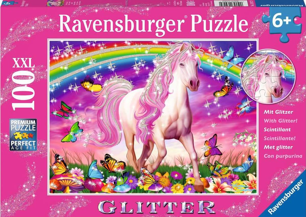 Brokatowy koń 100. Odkryj idealne dopasowanie! Ravensburger ma puzzle idealne dla wszystkich dzieci. Dzięki ciekawym motywom, strategicznym rozmiarom płytek i różnym formatom sukces jest gwarantowany dla wszystkich grup wiekowych i poziomów trudności. Ciesz się jakością Ravensburger podczas tej przyjaznej rodzinie atrakcji! Wiek 6+