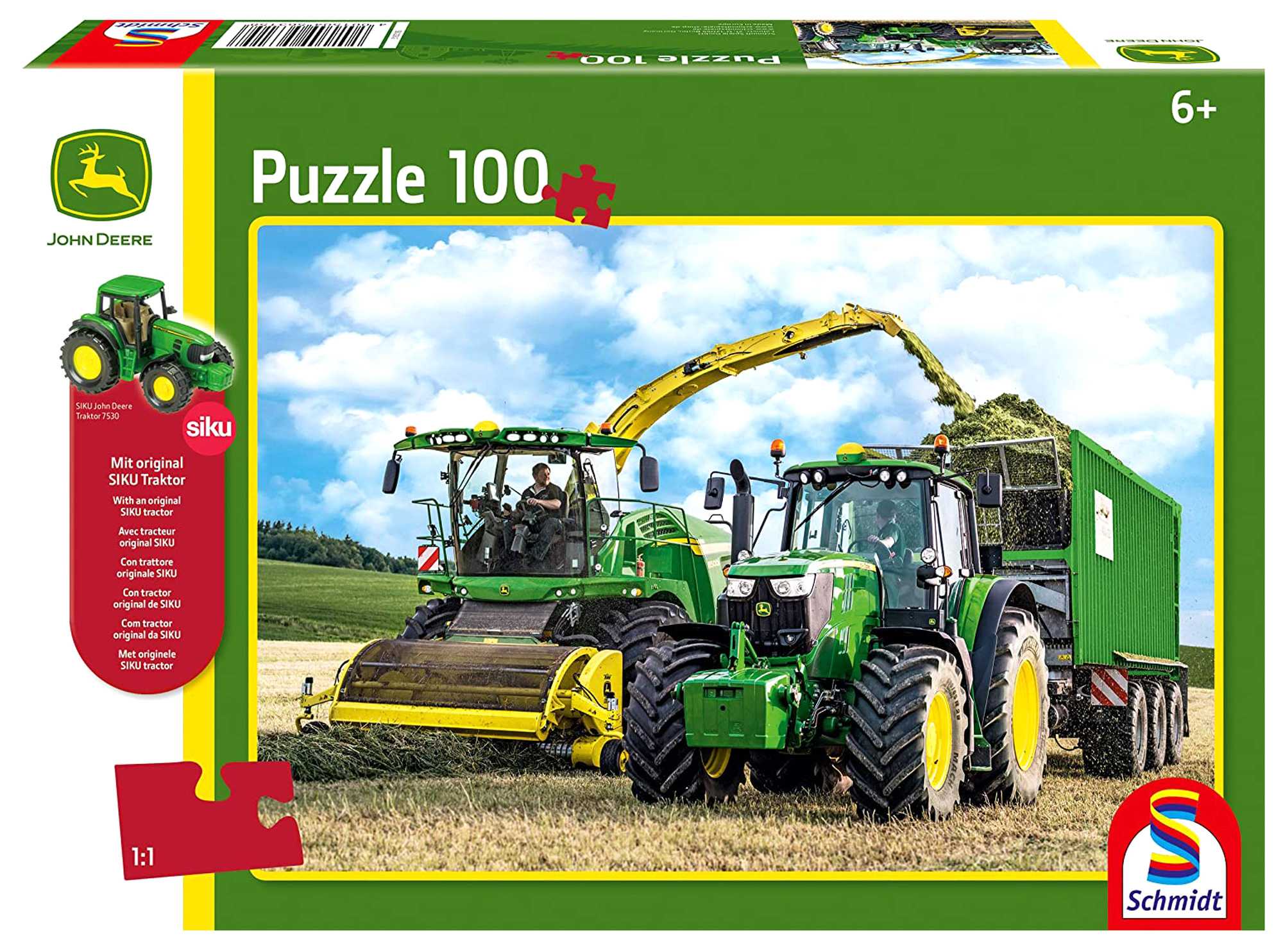 Opakowanie Puzzle 100 John Deere Traktor 6195M + zabawka G3