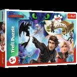 Puzzle 100 elementów z bohaterami JAK WYTRESOWAĆ SMOKA. Po ułożeniu powstanie obrazek o wymiarach 41x27,5 cm.