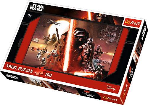 Puzzle 100 elementów z bohaterami VII epizodu sagi Star Wars. Po ułożeniu powstanie obrazek o wymiarach 41x27,8 cm. Wysoką jakość, nasycenie kolorów i bezpieczeństwo układania zapewnia kalandrowany papier odbijający światło i wykorzystanie materiałów ekologicznych.