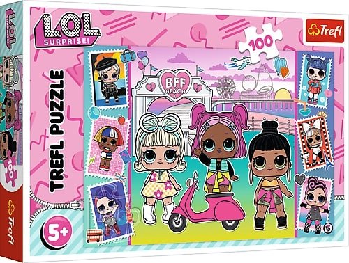 Zdjęcia laleczek to puzzle składające się z 100 elementów z popularnymi laleczkami LOL Surprise. Po ułożeniu powstanie obrazek o wymiarach 410 x 275 mm.