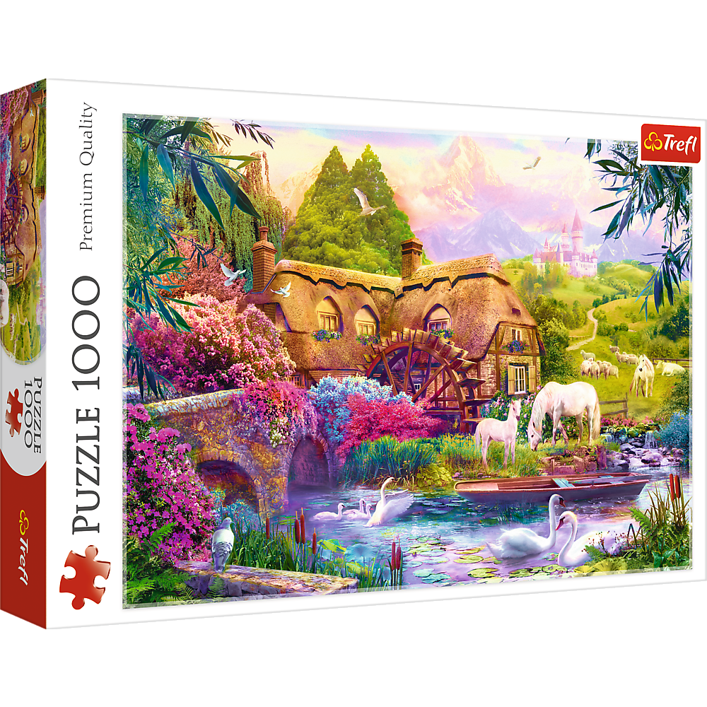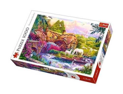 Puzzle składające się z 1000 elementów przedstawiające widok na bajkową krainę. Po ułożeniu powstanie obrazek o wymiarach 683x480 mm. Produkt został wykonany z wysokiej jakości materiałów, z zastosowaniem specjalnego kalandrowanego papieru odbijającego światło, co ułatwia układanie. Produkt został wyprodukowany w Polsce, a do produkcji zostały użyte materiały ekologiczne.