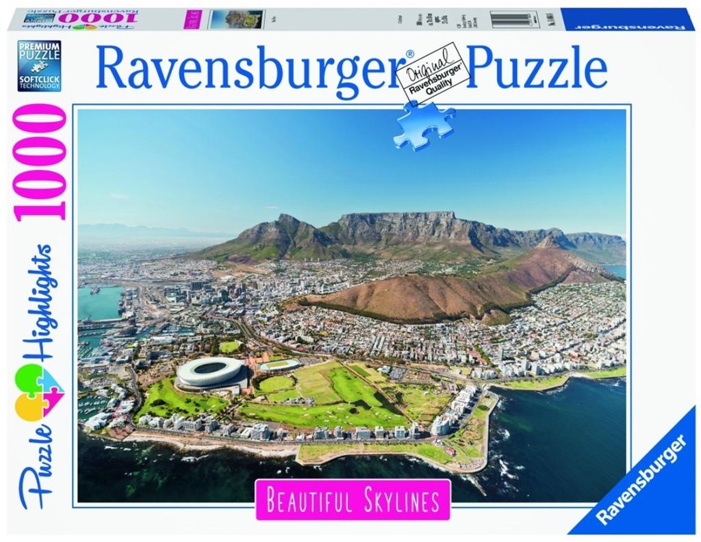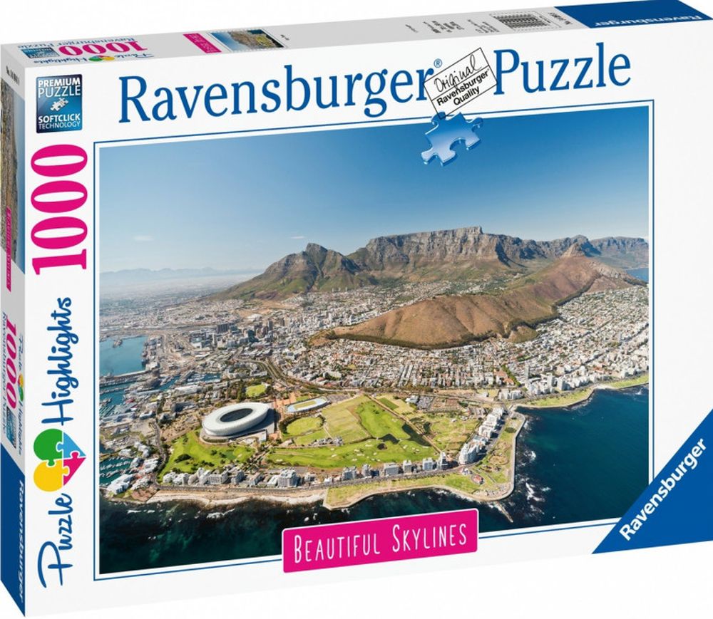 Seria puzzli 1000 elementów Ravensburger przedstawia wyjątkowe panoramy znanych miejsc, w tym przypadku widok na Kapsztad.