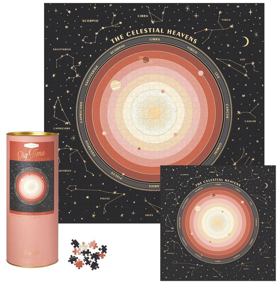 Zestaw 1000 trudnych puzzli ‘Celestial Heavens’ wydane przez DESIGNWORKS INK. Ten niesamowity, astronomiczny wzór został dodatkowo pokryty złotą warstwą, tak aby efekt był jeszcze bardziej spektakularny. Opakowane w piękną, dużą tubę ze złoceniami. Do zestawu dołączony został dodatkowy plakat 30,5 x 30,5 cm do oprawienia lub włożenia do albumu. Rozmiar puzzli po złożeniu to 61 x 61 cm. Sprawdź całą serię złoconych puzzli od DESIGNWORKS INK aby wybrać swój niepowtarzalny zestaw. Świetny prezent dla kobiety. W sam raz na długie wieczory. Misją Designworks Ink jest tworzenie produktów dla miłośników świetnego designu, dbałości o szczegóły i wyjątkowej jakości. W ofercie Designworks Ink znajdziesz notatniki, zestawy podróżne, artykuły biurowe a nawet puzzle. Jeśli kochasz otaczać się pięknymi i niebanalnymi przedmiotami – ta marka jest wprost stworzona dla Ciebie. Sprawdź pełną ofertę i zanurz się w oceanie pastelowych cacuszek, które rozświetlą Twój dzień.