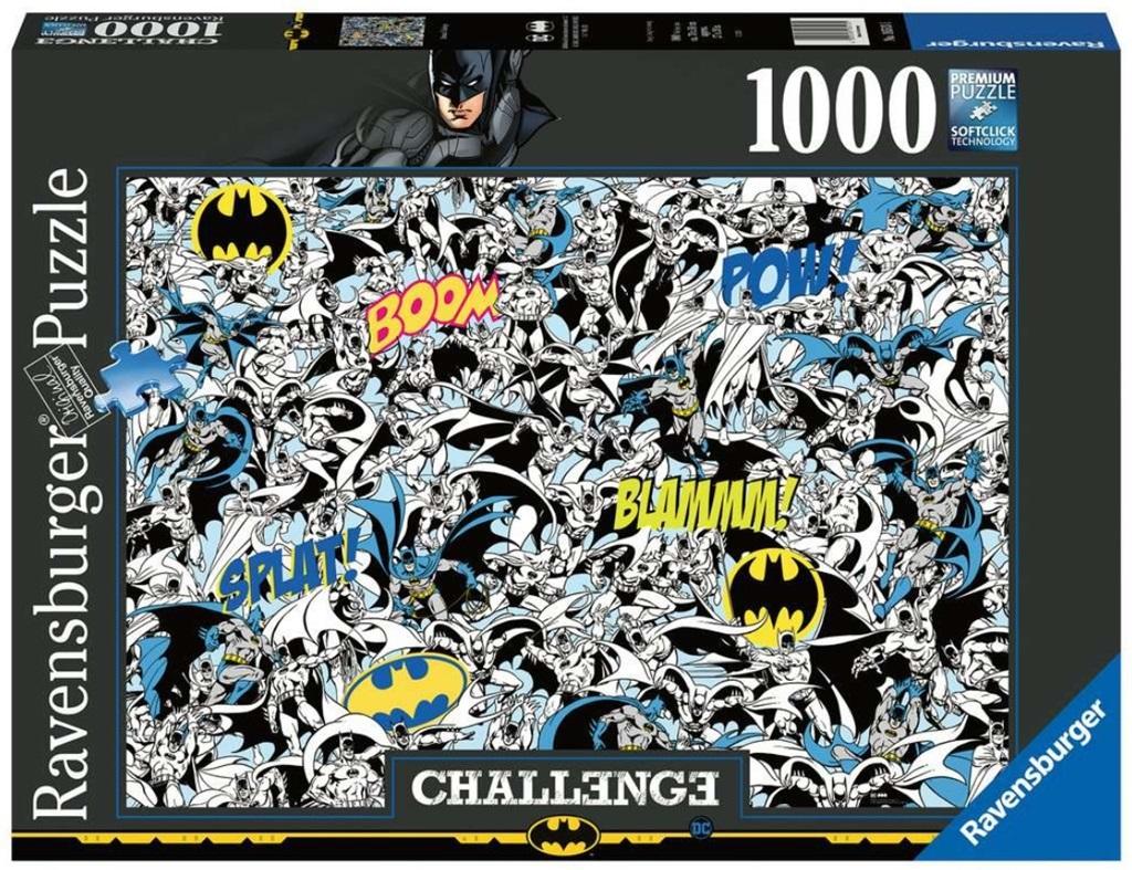 Puzzle 1000 elementów Ravensburger z serii Challenge to idealny produkt dla wszystkich poszukujących wyzwań! Układanka posiada motyw z Batmanem, ułożonym jednak w takiej sekwencji, że trzeba wytężyć wzrok, aby podołać zadaniu. Po ułożeniu puzzle mają wymiary 70 x 50 cm
