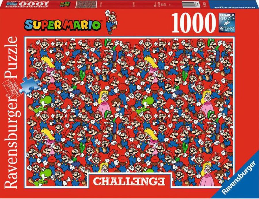 Puzzle 1000 elementów Ravensburger z serii Challenge to idealny produkt dla wszystkich poszukujących wyzwań! Układanka posiada motyw z Super Mario Bros, ułożonym jednak w takiej sekwencji, że trzeba wytężyć wzrok, aby podołać zadaniu. Po ułożeniu puzzle mają wymiary 70 x 50 cm