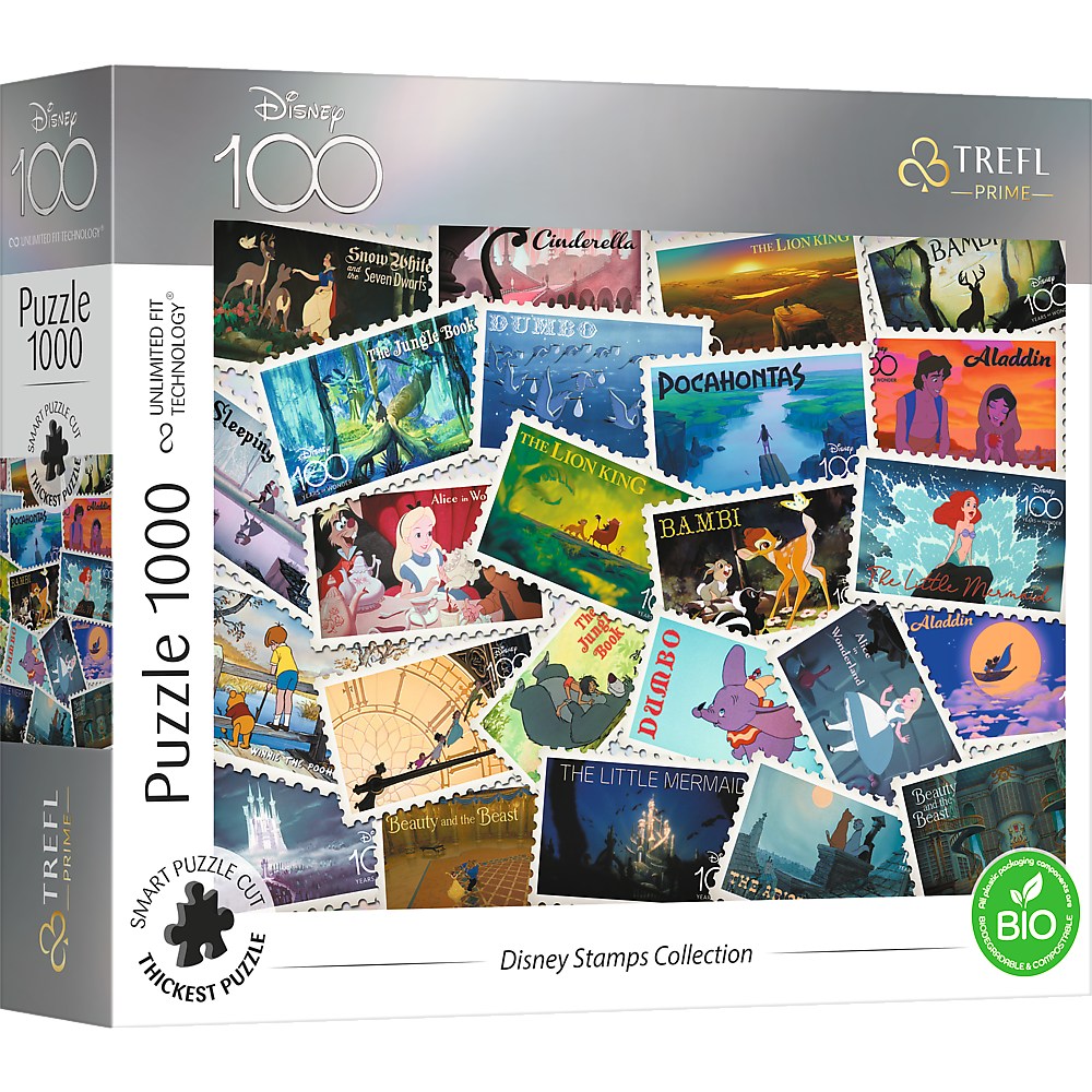 Puzzle z serii Trefl Prime Unlimited Fit Technology składające się z 1000 elementów są idealne dla prawdziwych fanów układania! Puzzle przedstawiają kolekcię znaczków pocztowych z różnymi postaciami z bajek Disney'a. Po ułożeniu powstanie obraz o wymiarach 683x480 mm.