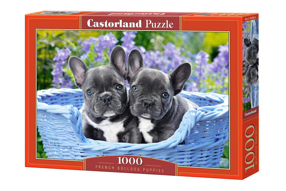 Puzzle - 1000 elementów "French Bulldog Puppies", wymiary ułożonego obrazka 68x47 cm. UkładaPuzzle - 1000 elementów "French Bulldog Puppies", wymiary ułożonego obrazka 68x47 cm. Układanie puzzli rozwija cierpliwość, ćwiczy pamięć i koncentrację. Równocześnie relaksuje, wycisza, a zarazem dają dużo fajnej zabawy i satysfakcji z ułożonego obrazka. Po ułożeniu można je wykorzystać jako oryginalną ozdobę wiszącą na ścianie lub leżącą pod szybą na stole. Szczególnie polecane jako wspólna rodzinna zabawa na długie zimowe wieczory, a także na każdy czas, kiedy chcemy pobyć razem.nie puzzli rozwija cierpliwość, ćwiczy pamięć i koncentrację. Równocześnie relaksuje, wycisza, a zarazem dają dużo fajnej zabawy i satysfakcji z ułożonego obrazka. Po ułożeniu można je wykorzystać jako oryginalną ozdobę wiszącą na ścianie lub leżącą pod szybą na stole. Szczególnie polecane jako wspólna rodzinna zabawa na długie zimowe wieczory, a także na każdy czas, kiedy chcemy pobyć razem.razem.