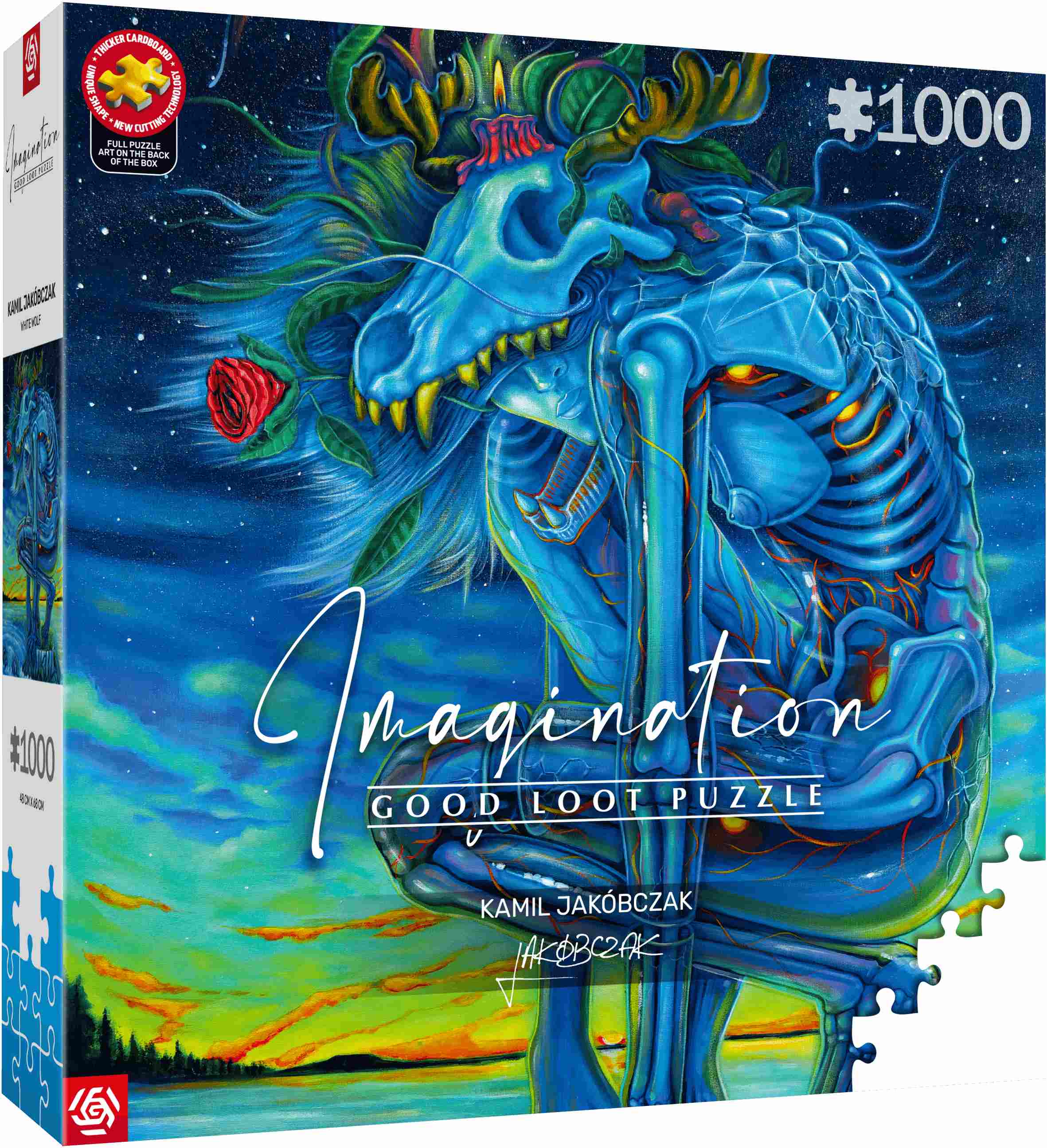 "DOTKNIJ SZTUKI: Puzzle Imagination to wyjątkowa seria, która pozwoli Ci doświadczyć sztuki na własnych zasadach. Wykorzystaliśmy ilustracje wykonane przez znanych artystów z całego świata, aby dać Ci możliwość dokładnego przyjrzenia się ich szczegółowym i skomplikowanym dziełom.