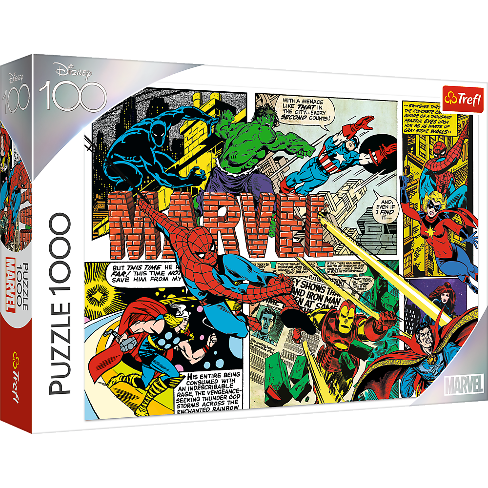 Puzzle 1000 elementów, idealne dla miłośników układanek, pozwolą stworzyć obrazek o wymiarach 683 x 480 mm, przedstawiający obrazki z pierwszych komiksów Marvela. Układanie puzzli niesie za sobą szereg korzyści, zarówno dla dzieci, jak i dorosłych. To skuteczny sposób na ćwiczenie pamięci, koncentracji, a także niezawodny sposób na odstresowanie się i odprężenie. Dzięki puzzlom trenujemy spostrzegawczość, ale również uczymy się cierpliwości. Ułożony przez nas gotowy obraz możemy powiesić na ścianie, a tym samym urozmaicić wnętrze naszego mieszkania.