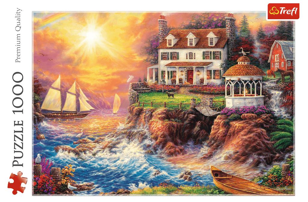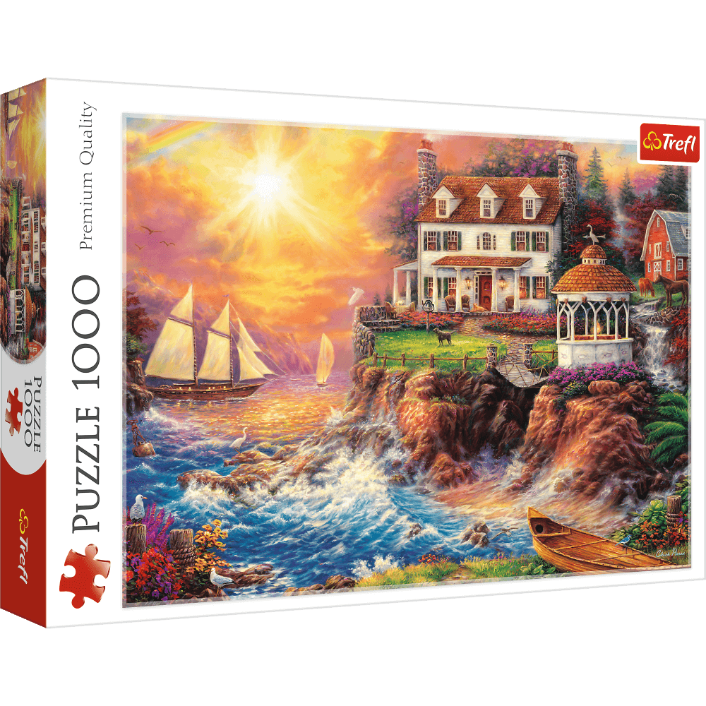 Puzzle składające się z 1000 elementów przedstawiające widok na morską przystań. Po ułożeniu powstanie obrazek o wymiarach 683x480 mm. Produkt został wykonany z wysokiej jakości materiałów, z zastosowaniem specjalnego kalandrowanego papieru odbijającego światło, co ułatwia układanie. Produkt został wyprodukowany w Polsce, a do produkcji zostały użyte materiały ekologiczne.