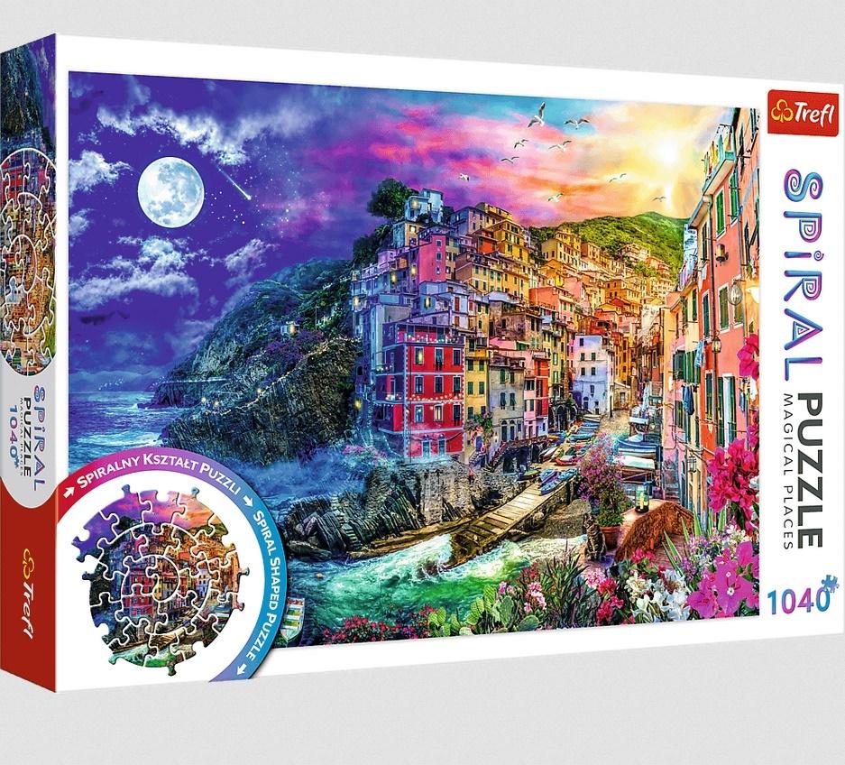 Spiral Puzzle to seria zakręconych obrazów, których elementy po ułożeniu tworzą spiralny kształt. Wskocz w wir dobrej zabawy. Podejmij wyzwanie i wkręć się w układanie! 1040 elementowe puzzle przedstawiają Magiczną włoską zatokę. Po ułożeniu powstanie obrazek o wymiarach 683x480 mm.
