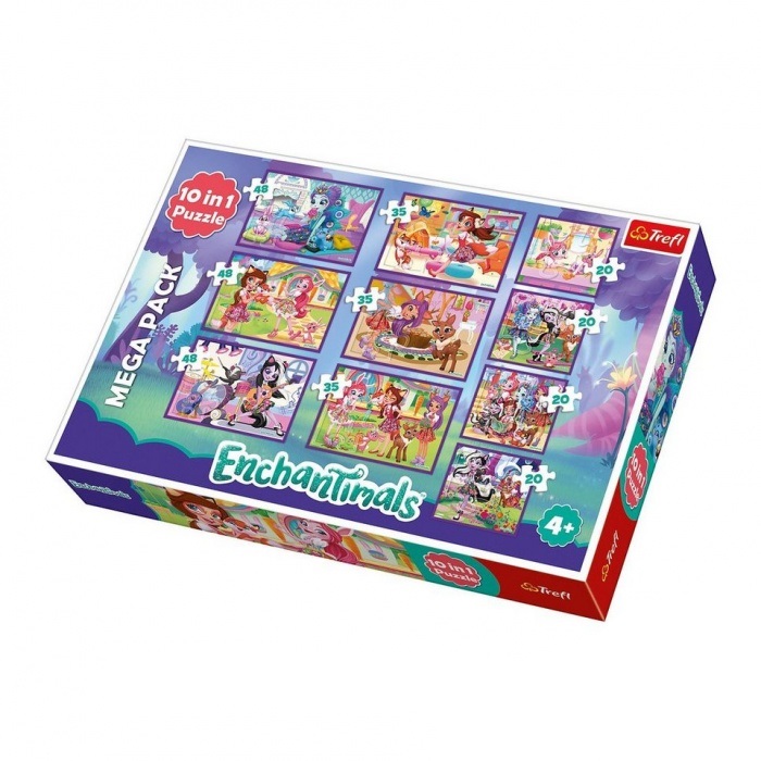 Puzzle Enchantimals 10w1 Mega Pack zostały stworzone przez cieszącą się dużym zaufaniem, polską markę Trefl. Zestaw ten powstał na podstawie animowanego serialu dla dzieci pod tytułem Enchantimals, opowiadającego o przygodach dziewcząt posiadających zwierzęce cechy, żyjących w fantastycznym świecie i opiekujących się leśnymi zwierzętami.