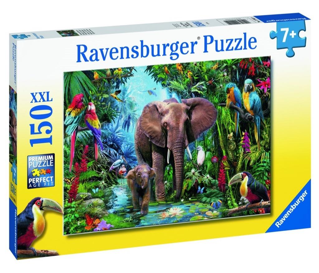 Puzzle XXL 150 elementów Ravensburger to składająca się ze 150 elementów układanka przedstawiająca słonie w dżungli