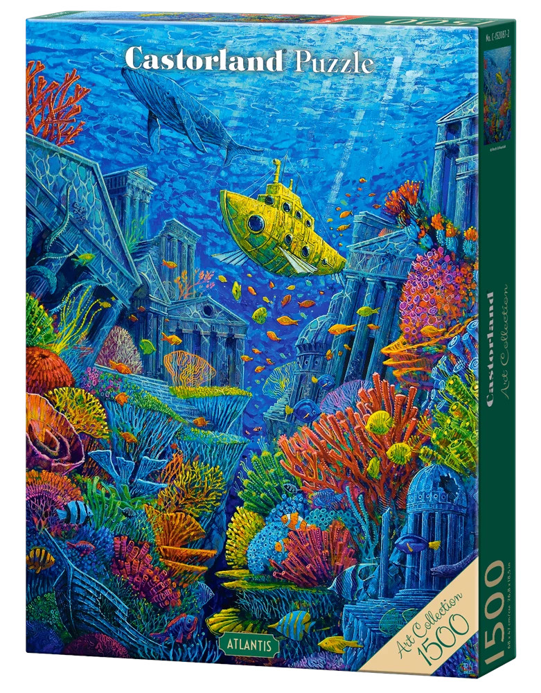 Puzzle 1500 Atlantis Roch Urbaniak - Puzzle z nowej zielonej serii ART COLLECTION Castorland Puzzle. Seria wyróżnia się nowym wyglądem pudełka oraz ilustracjami, które nawiązują zarówno do najnowszych trendów w światowym malarstwie, jak i klasycznych, znanych obrazów. Roch Urbaniak zdobył światową sławę dzięki niezwykłemu połączeniu mitologii, legend i inspirujących podróży z szeroko rozumianą popkulturą. Jego urzekające obrazy, które teraz będą dostępne również jako puzzle, zapewnią niezapomnianą rozrywkę i mogą stać się interesującym elementem wystroju wnętrz. Format ułożonej układanki: 68 x 47 cm.
