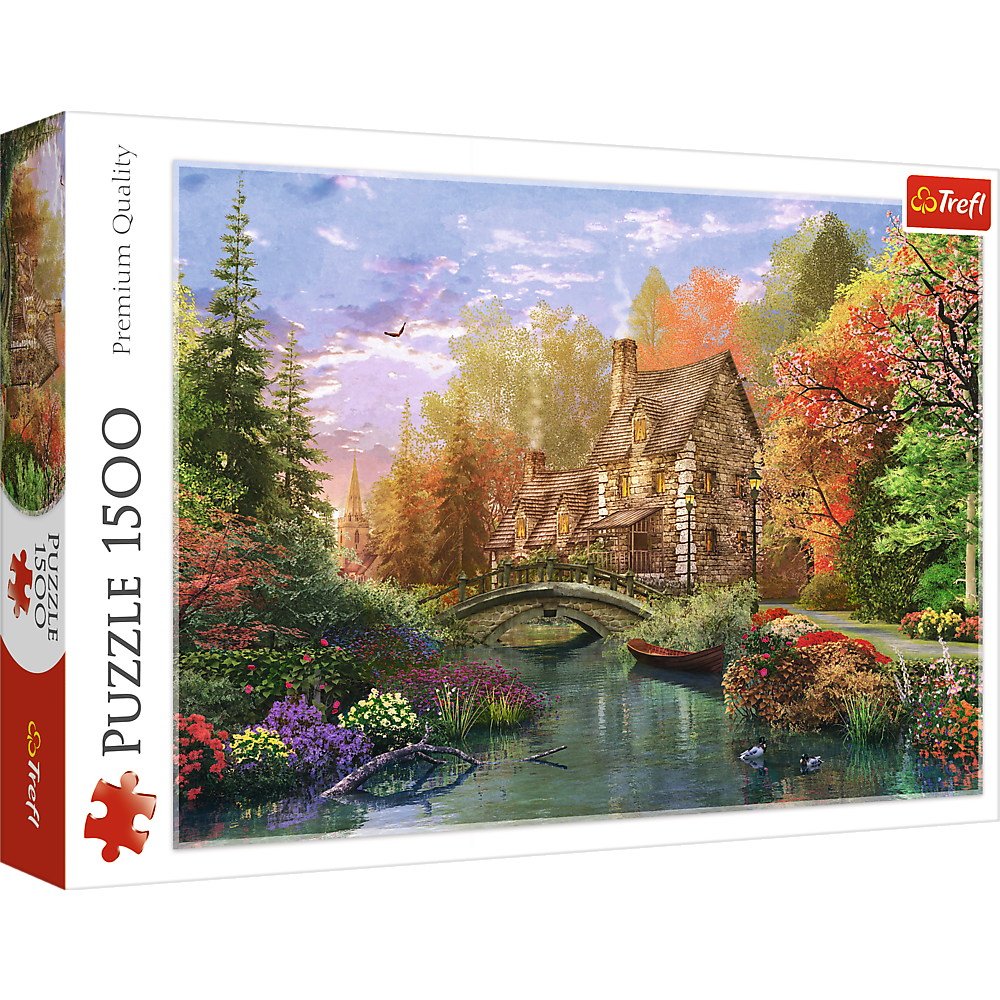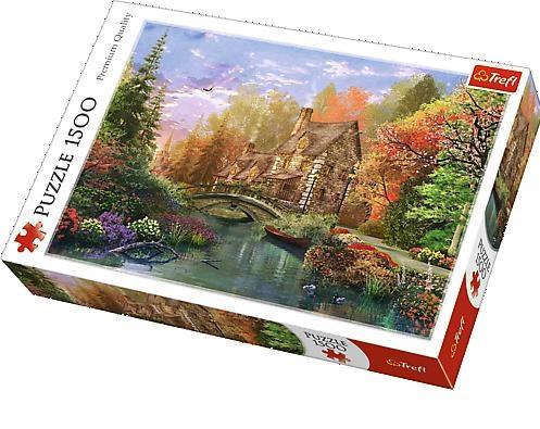 Puzzle 1500 elementów z malowniczym obrazem chatki nad wodą. Po ułożeniu powstanie obrazek o wymiarach 85x58 cm. Wysoką jakość, nasycenie kolorów i bezpieczeństwo układania zapewnia wykorzystanie materiałów ekologicznych.