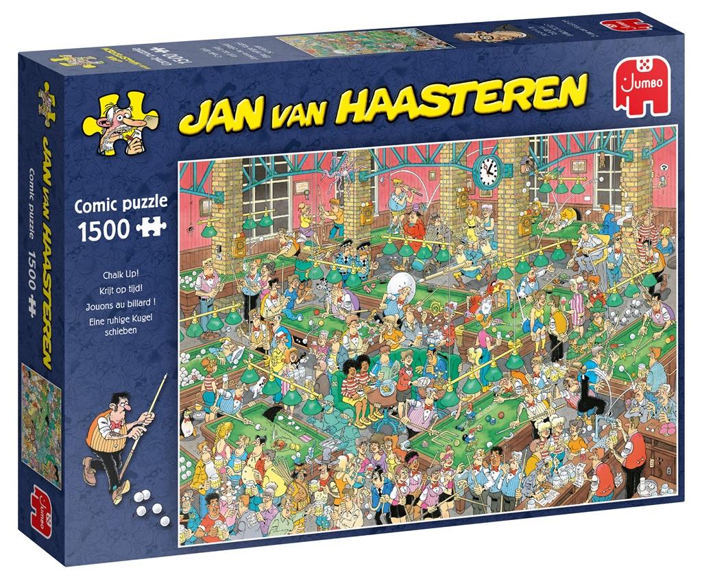 Od dziesięcioleci, Jan van Haasteren tworzy specjalnie dla marki Jumbo, niezwykle kolorowe humorystyczne ilustracje z dbałością o najdrobniejszy nawet szczegół. Nic więc dziwnego, że puzzle Jana van Haasterena stały się niekwestionowanym numerem 1 wśród komiksowych układanek. Większość fanów jego twórczości natychmiast zacznie szukać znaku rozpoznawczego Jana płetwy rekina, którą znaleźć można we wszystkich stworzonych przez niego puzzlach!