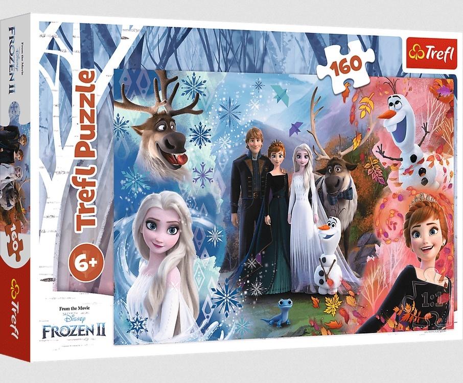 Chcę uwierzyć snom"" to puzzle składające się z 160 elementów z bohaterami najnowszej, drugiej części filmu animowanego ""Frozen"". Po ułożeniu powstanie obrazek o wymiarach 41x27,5 cm. Wysoką jakość, nasycenie kolorów i bezpieczeństwo układania zapewnia kalandrowany papier odbijający światło i wykorzystanie materiałów ekologicznych.