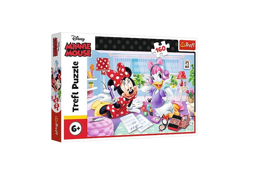 Puzzle 160 elementów z bohaterami bajek Disneya. Po ułożeniu powstanie obrazek o wymiarach 41x27,8cm przedstawiający Minnie i Daisy. Wysoką jakość, nasycenie kolorów i bezpieczeństwo układania zapewnia kalandrowany papier odbijający światło i wykorzystanie materiałów ekologicznych.