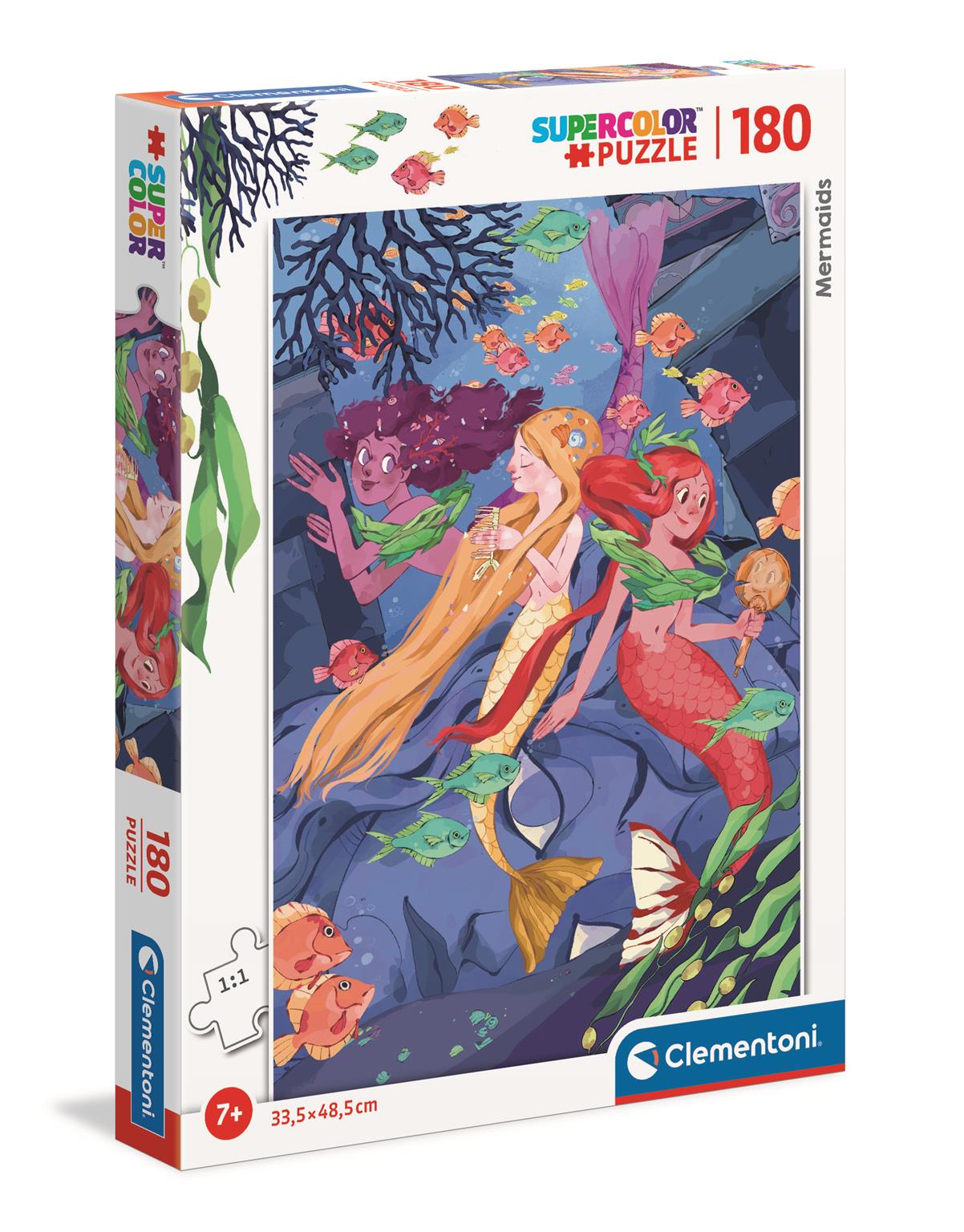 Wysokiej jakości puzzle znanej i cenionej marki Clementoni, składające się ze 180 elementów. Po ułożeniu powstanie obrazek z motywem Mermaids.Wymiary po złożeniu to 33,5x48,5 cm.