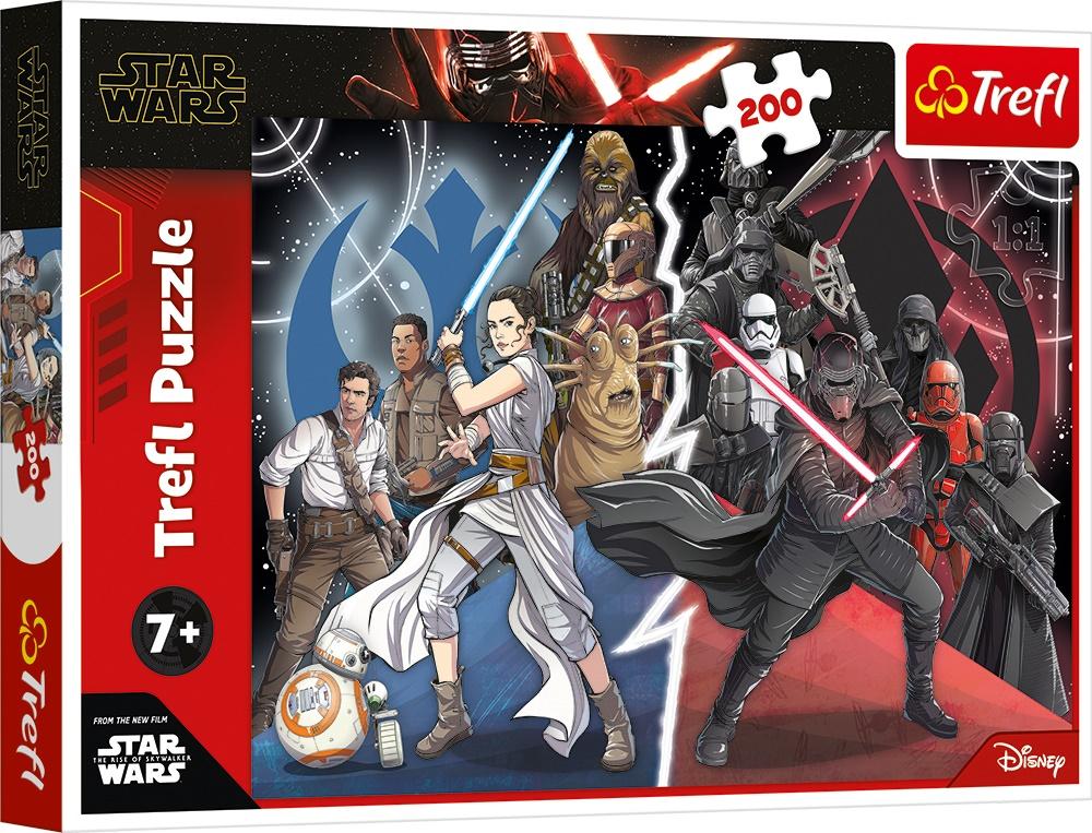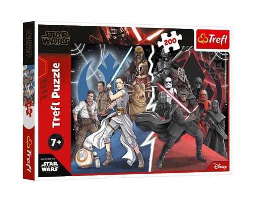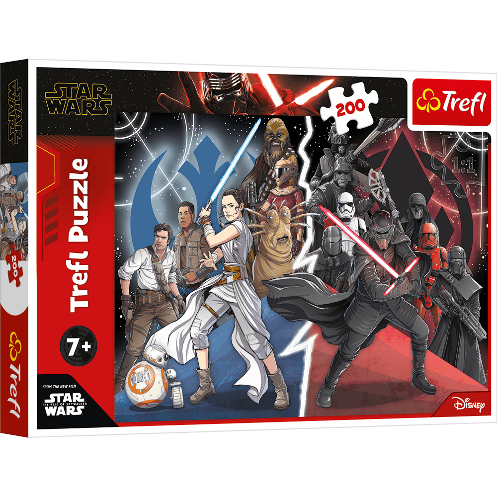 "Bitwa w galaktyce" to puzzle składające się z 200 elementów z bohaterami najnowszego, IX epizodu sagi Star Wars. Po ułożeniu powstanie obrazek o wymiarach 48x34 cm. Wysoką jakość, nasycenie kolorów i bezpieczeństwo układania zapewnia kalandrowany papier odbijający światło i wykorzystanie materiałów ekologicznych. Wiek 7+